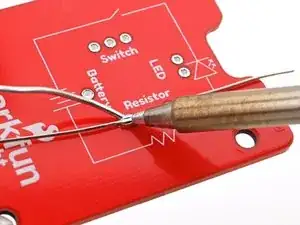 На этом шаге вы будете нагревать контактную площадку и вывод резистора, чтобы припой плавился на них.