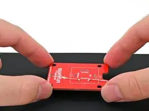 Разместите переключатель на его контуре на передней стороне печатной платы. Убедитесь, что все три вывода проходят через свои отверстия в плате.