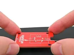 Переверните плату и положите её так, чтобы переключатель опирался на рабочую поверхность или коврик.