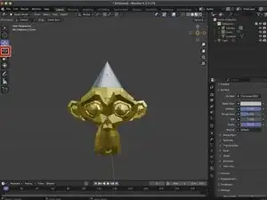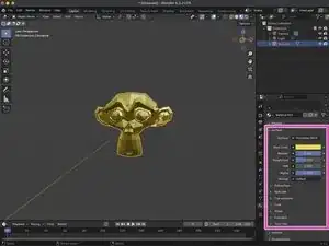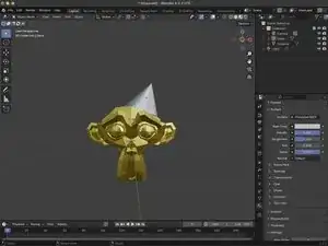 Материал можно изменить, изменяя значения во вкладке Поверхность. В нашем примере мы изменили Основной цвет на шестнадцатеричный FFD700, Металличность на 1 и Шероховатость на 0.35, чтобы придать Сюзанне золотую текстуру.