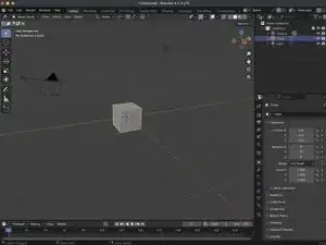 По умолчанию Blender создаёт единичный куб размером 1 м3 вместе с камерой и источником света. Вы можете выбрать эти объекты, щёлкнув по ним левой кнопкой мыши в 3D-вьюпорте или в Outliner. Удалите только куб, щёлкнув правой кнопкой по кубу в Outliner и выбрав в меню Удалить.