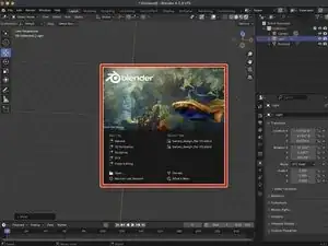Вы можете снова открыть приветственный экран, щёлкнув по значку Blender в верхней панели и выбрав Приветственный экран.