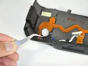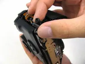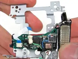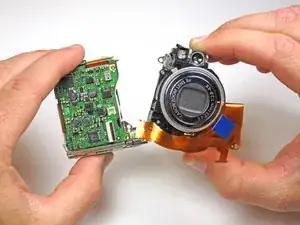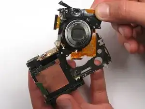 В большинстве камер оптический блок — один из последних компонентов, который можно снять. Будьте терпеливы при его снятии, он хрупкий.