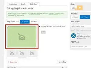 После загрузки фотографии нажмите на неё, чтобы поместить её в шаг руководства.