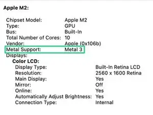 Даже если у вашего Mac есть графика Metal, macOS 13+ (Ventura и Sonoma) имеют новую проблему с устаревшим Metal.