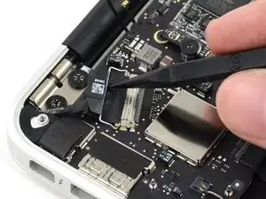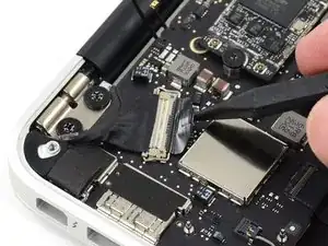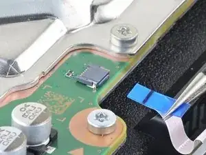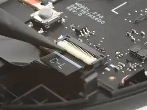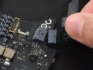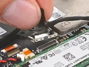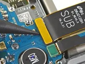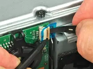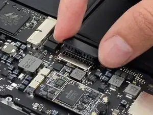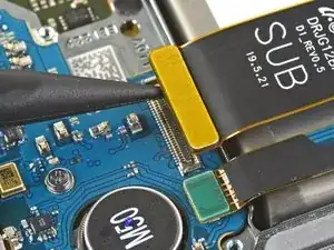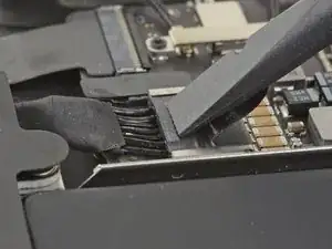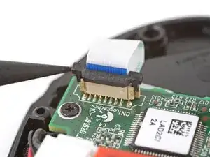 Чтобы отключить кабель, используйте плоский конец лопатки, чтобы приподнять и отщёлкнуть внешние края разъёма. Возможно, вам придётся использовать пальцы, чтобы полностью вытащить разъём из гнезда.