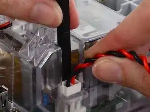 Используйте лопатку или чистый ноготь, чтобы вдавить запирающую планку, зафиксировав кабель.