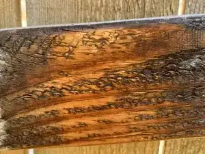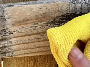 Можно промыть шлангом, при необходимости протереть салфеткой. Дайте древесине высохнуть перед переходом к следующему шагу.