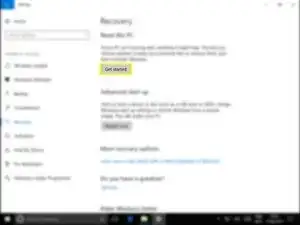 В меню восстановления нажмите "Начать" под "Сбросить этот ПК"