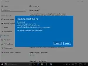После прочтения быстрого обзора того, что произойдет. Нажмите "Сброс"