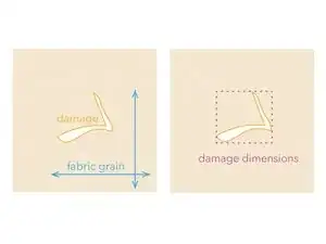 Следуйте линиям нитей ткани изделия, измеряя в каждом направлении по нитям, чтобы получить ширину и высоту повреждения.