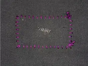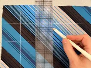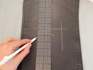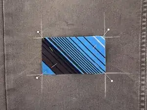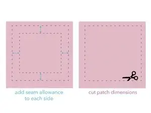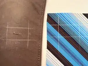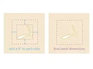 Добавьте 1/2 дюйма (~13 мм) к каждой стороне начерченных размеров заплаты и отметьте эти новые линии мелом или термоисчезающим маркером.