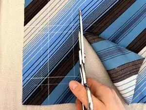 Сформируйте скошенный угол каждой стороны так, чтобы на краях заплаты не было открытой ткани. (См. следущий шаг для видеоинструкции.)