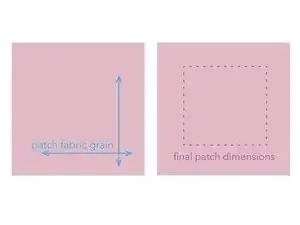 Убедитесь, что края заплаты следуют направлениям нитей ткани. Направление нитей заплаты должно совпадать с направлением нитей изделия для лучшего внешнего вида и работы.
