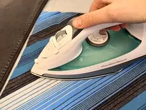 Выберите ткань для заплатки и прогладьте её утюгом или отпарьте, чтобы она была гладкой и без складок.