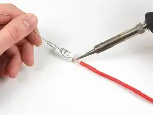 Наденьте кусок термоусадочной трубки на провод, убедившись, что вы полностью закрыли паяное соединение и открытый провод.