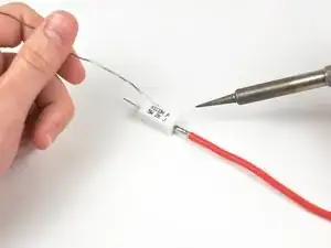 Затем обрежьте оба конца резистора, чтобы они соответствовали длине снятой изоляции с проводов на предыдущем этапе.