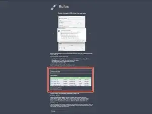 Чтобы записать ISO, скачайте Rufus. Поместите его в место, где его легко найти.
