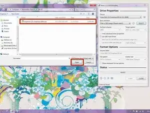 Откройте Rufus и нажмите SELECT. Найдите ISO и нажмите Open.