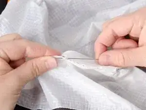 Сделайте небольшой стежок, входя и выходя из материала только с одной стороны разрыва.