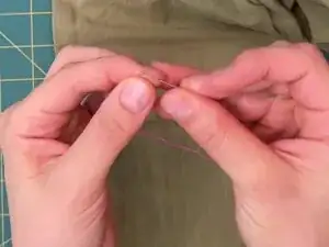 Наденьте на иглу примерно 24 дюйма (62 см) нити и завяжите узел на одном конце. Подробности см. в статье «Иглы и нить».
