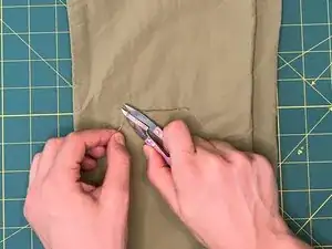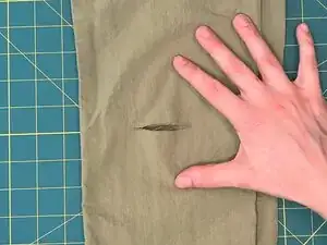 Проверьте, что ткань лежит ровно и разрыв полностью закрыт.