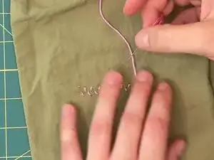 Когда вы протолкнёте иглу через последнюю точку прокола, оставьте иглу на изнаночной стороне ткани.