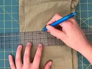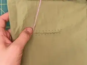 Используйте портновский мел или термоудаляемую ручку, чтобы отметить равномерно расположенные точки прокола по обеим сторонам разрыва: