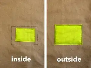 Лицевая заплатка должна быть достаточно большой, чтобы закрыть строчку внутренней заплатки.
