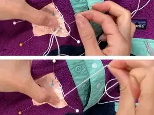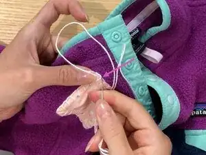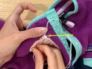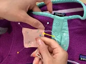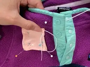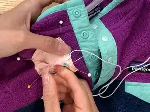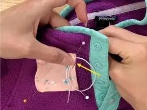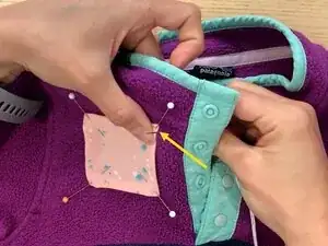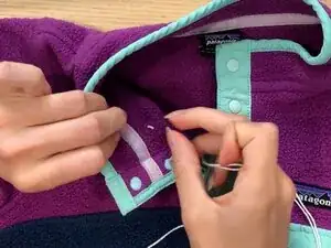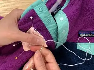 В этом руководстве показано, как вручную выполнить строчку «пэчворк» для закрепления заплатки на отверстии в одежде Patagonia Snap-T®. Эта строчка известна своей прочностью и декоративным видом, а также часто используется для закрепления необработанных краёв ткани или пришивания заплаток.