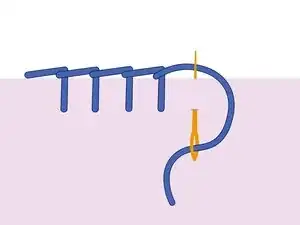 Протяните иголку и нить, убедившись, что иголка проходит через петлю, образованную стежком.
