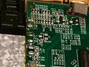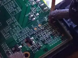 Нанесите фитиль для демонтажа на область, из которой вы удаляете припой, и удерживайте паяльник на нем, чтобы он мог всасывать припой в фитиль. Будьте очень осторожны и не оставляйте паяльник на слишком длительное время, так как компоненты платы очень хрупкие.