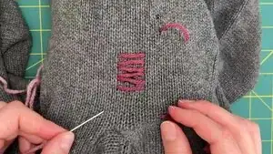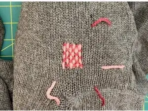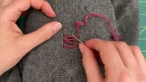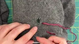 Этот урок описывает конкретную технику, называемую поверхностной штопкой, при которой ряды стежков укладываются поверх ткани; она лучше всего подходит для трикотажа из пряжи средней и тяжёлой плотности. Для техники, подходящей для лёгких трикотажных изделий, см. Как заштопать дыру в вязаной вещи.