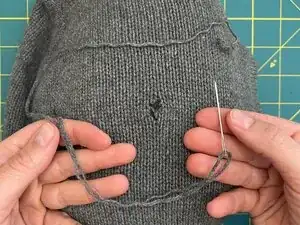 В этом руководстве показано, как исправить дыру в шерстяном свитере Patagonia® методом тканой штопки. Штопка — это ремонтный приём, который воссоздаёт петли для заполнения и укрепления отверстий.