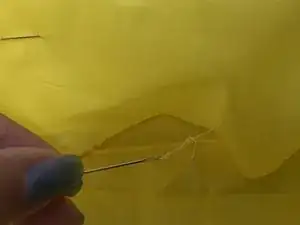 Возьмите швейную иглу и нитку подходящего цвета к ткани.