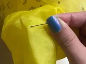 Вставьте швейные булавки, как в шагах 2 и 3.