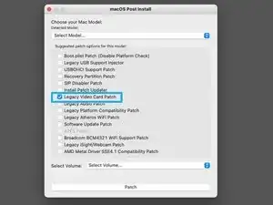 Выберите модель Вашего Mac и примените только патч «Legacy Video Card».