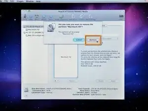 Когда появится запрос, нажмите кнопку «Удалить», чтобы удалить существующие разделы диска.