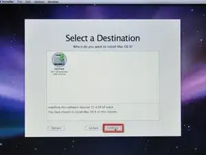 Теперь мы готовы установить Mac OS X v10.5 Leopard на жёсткий диск. Перед переходом к следующему шагу убедитесь, что все параметры установки верны.