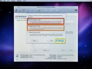 Выберите «GUID Partition Table» для машин на базе Intel.
