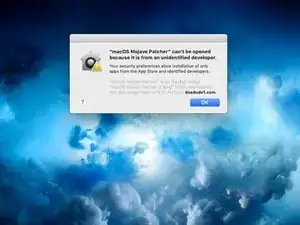 Если вы получите сообщение об ошибке "macOS Mojave Patcher не может быть открыт, так как от неопознанного разработчика." (2-е изображение), вы можете обойти это, щелкнув по приложению правой кнопкой мыши и выбрав "Открыть" (3-е изображение).
