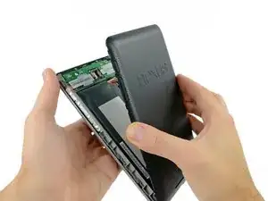 Аккуратно проведите пластиковым инструментом вдоль верхнего края, чтобы поддеть заднюю крышку и отодвинуть её от переднего модуля Nexus 7.