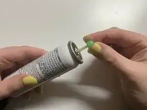 Возьмите баллончик с бутаном и наденьте резиновый брусок на кончик насадки.