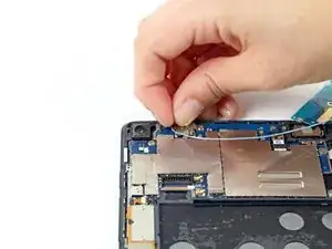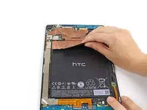 Пока не вытаскивайте аккумулятор из планшета, так как он все еще подключен к материнской плате.