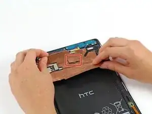 Используйте пинцет, чтобы отключить кабель вибратора. Он будет подниматься прямо вверх из разъема дочерней платы.