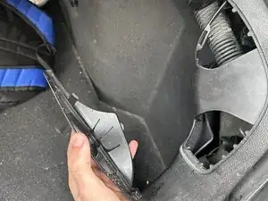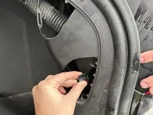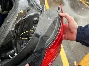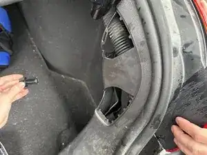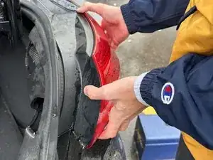 Найдите черную панель, расположенную за фонарем тормоза в багажнике, и снимите панель, потянув ее немного с усилием руками.