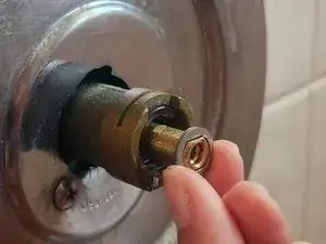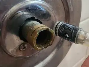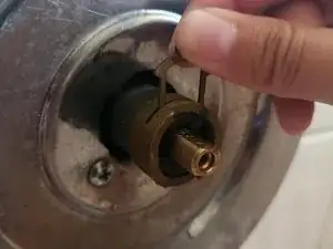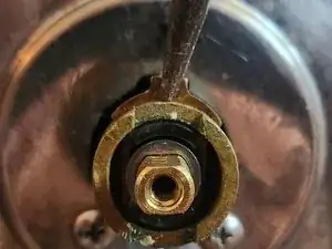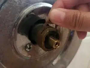 Снимите шайбу с латунного штока.