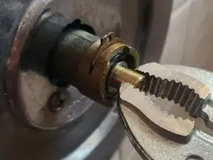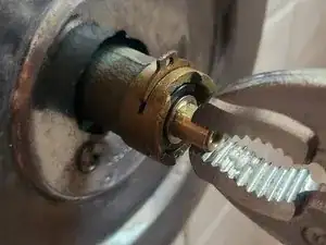 Используя тисочные клещи, крепко зажмите латунный шток и вытащите старый картридж 1225.