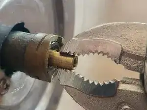 Зажмите латунный шток тисочными клещами и поверните его на 90 градусов влево, проверяя температуру воды для горячей воды.