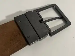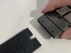 Теперь возьмите переднюю часть пряжки и вставьте её в переднюю часть новой ленты ремня.